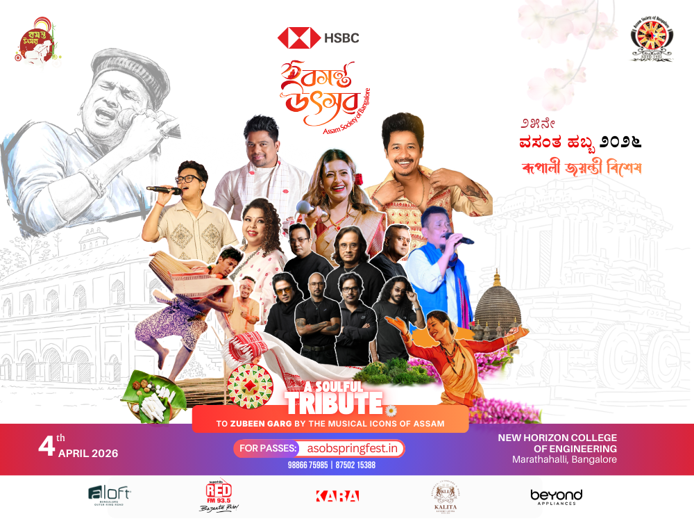 আপোনাক জনাবলৈ পাই আমি অতিশয় আনন্দিত যে, এই বৰ্ষত ‘অসম চ’ছাইটি অৱ বাংগালোৰ’এ ৰঙালী বিহুৰ গৌৰৱোজ্জ্বল ৰূপালী জয়ন্তী উদযাপন কৰিবলৈ আগবাঢ়িছে। এইবাৰৰ বিহুৰ অনুষ্ঠানসমূহ আমাৰ মৰমৰ শিল্পী জুবিন গাৰ্গৰ সংগীতময় যাত্ৰাৰ প্ৰতি বিশেষ সন্মান জনাই এক অনন্য ৰূপত আয়োজন কৰাৰ পৰিকল্পনা কৰা হৈছে। আপোনাৰ সক্ৰিয় অংশগ্ৰহণে আমাৰ এই ৰূপালী জয়ন্তী উৎসৱক অধিক সাফল্যমণ্ডিত কৰি তুলিব বুলি আমাৰ দৃঢ় বিশ্বাস।